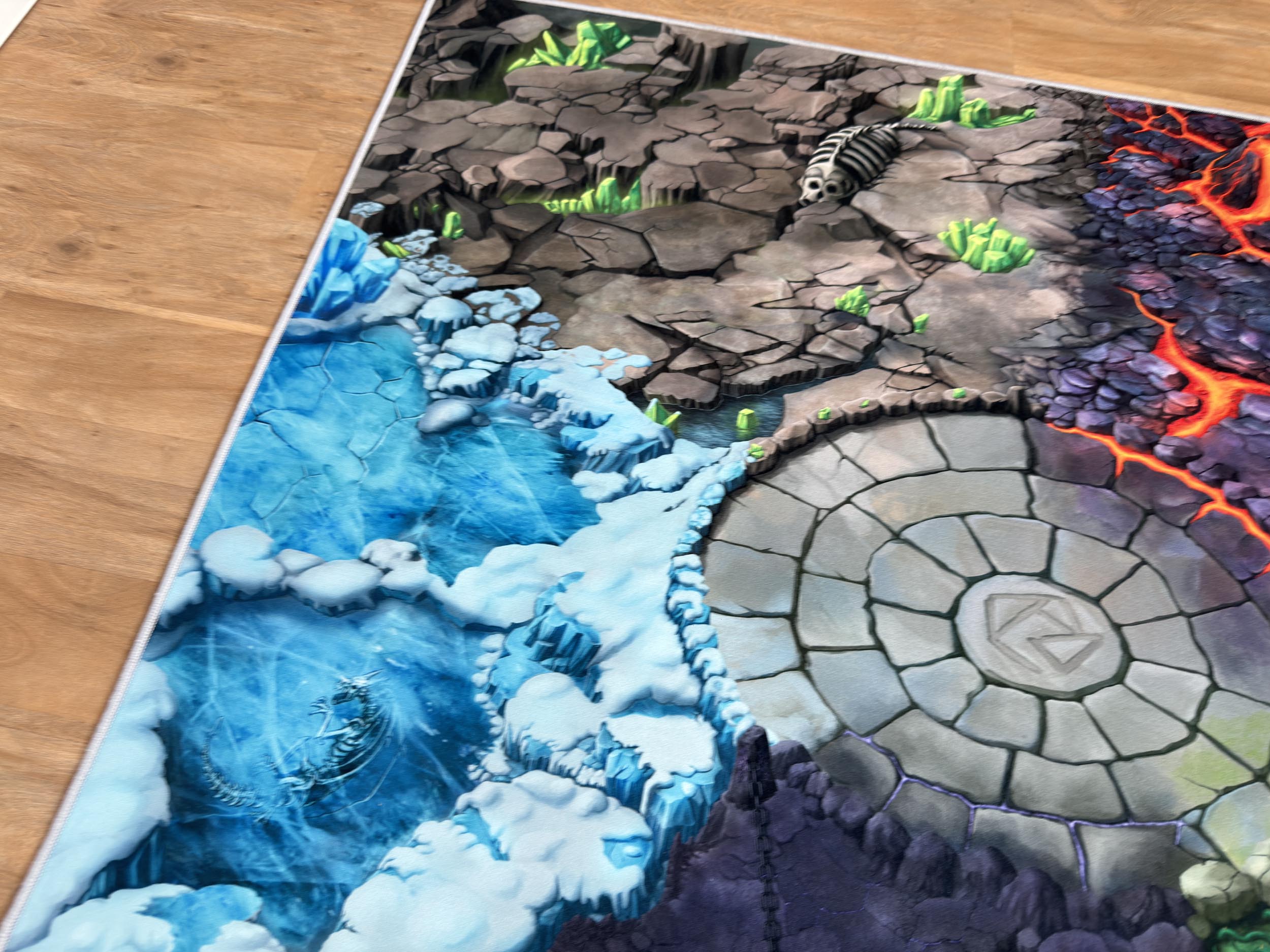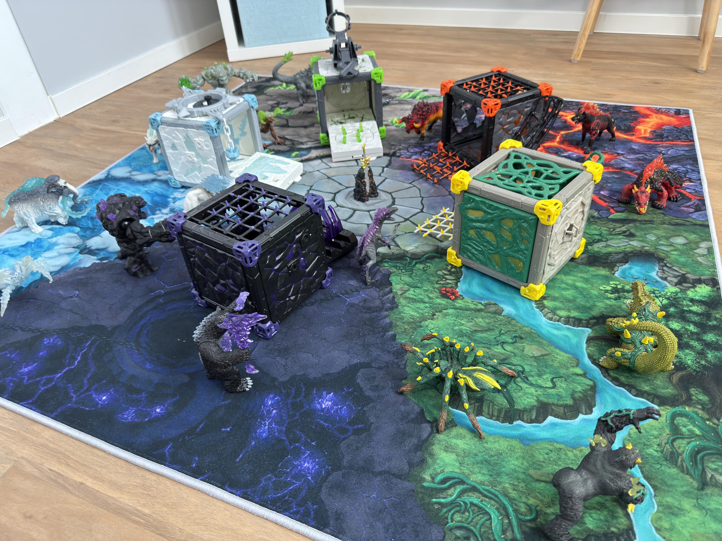 Dieser 120 × 120 cm große Spielteppich eröffnet eine epische Abenteuerlandschaft. Fünf geheimnisvolle Reiche warten darauf, entdeckt zu werden: die Steinwelt, die Lava-Welt, die Eis-Welt, die Dschungel-Welt und die mysteriöse Schattenwelt. Im Zentrum liegt die Battle Arena, in der mächtige Kreaturen ihr Können zeigen.